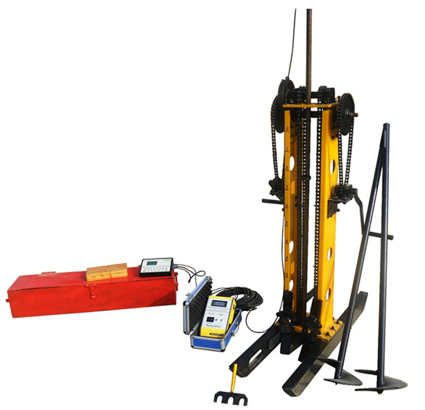 本機(jī)結(jié)構(gòu)合理、外形美觀,使用時(shí)不受電源限制,機(jī)動(dòng)靈活、性能穩(wěn)定可靠。尤其增加了雙人手搖和雙臂快搖裝置,可以隨不同的貫入阻力隨意調(diào)正人力。為增加貫入力在加粗了鏈輪軸后,采用8分滾珠進(jìn)行傳動(dòng),其極限貫入深度可達(dá)30米-35米。此機(jī)可與目前國內(nèi)外廠家生產(chǎn)的人工數(shù)字記錄儀、靜探微機(jī)(自動(dòng)記錄儀)等配套并進(jìn)行量測或記錄。