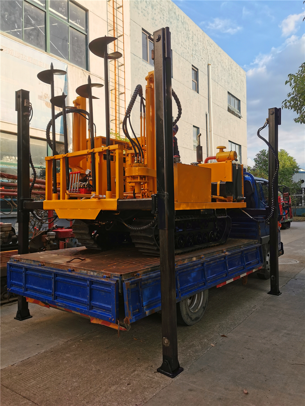 NTLPSY-L8-20T-SG型履帶靜力觸探車由自行走履帶底盤、1臺(tái)四缸柴油機(jī)、20T液壓靜探機(jī)、自動(dòng)伸縮式升高型上下車液壓支撐腿系統(tǒng)、2組液壓下錨機(jī)、控制器、平臺(tái)及駕駛機(jī)構(gòu)等組成,共同組裝在一個(gè)機(jī)架上。